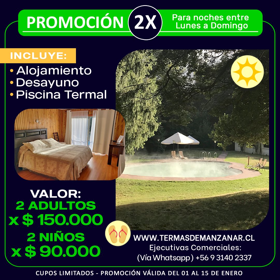 Promoción 2X Alojamiento con Piscina Termal – Enero (del 01 al 15)